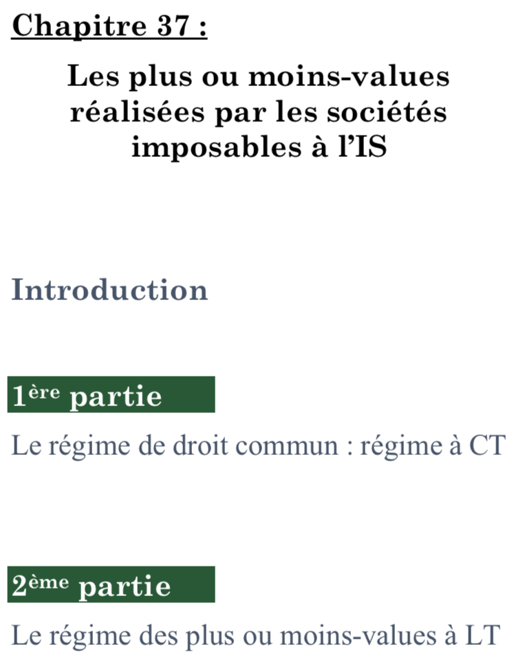| 37. Les plus ou moins-values réalisées par les sociétés imposables à l'IS | ![]() |