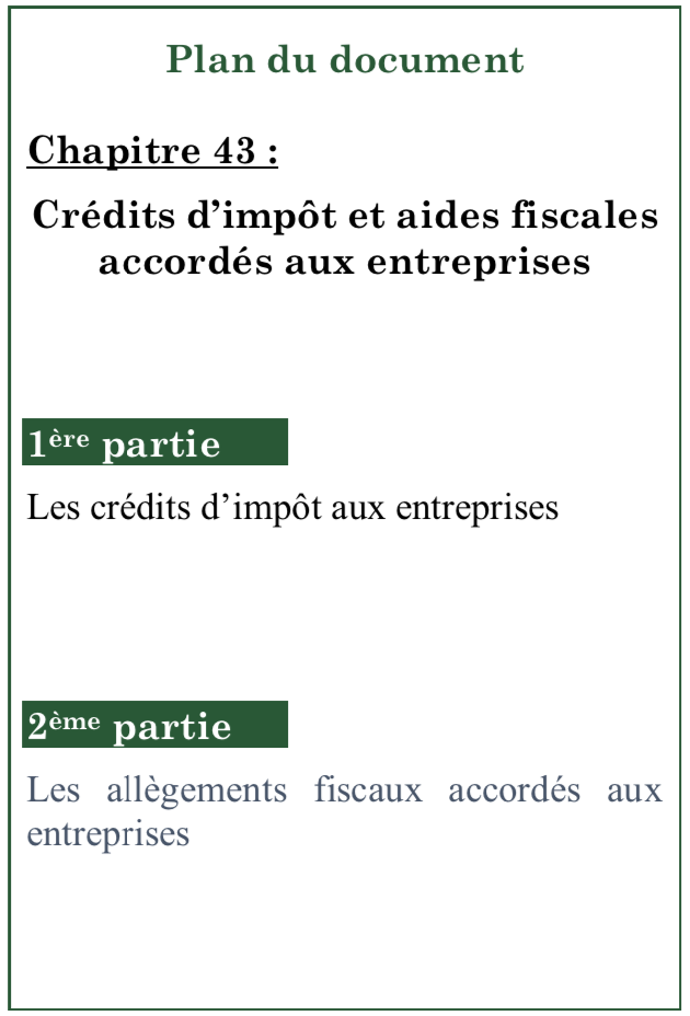 | 43. Crédits d'impôt et aides fiscales accordées aux entreprises | ![]() |