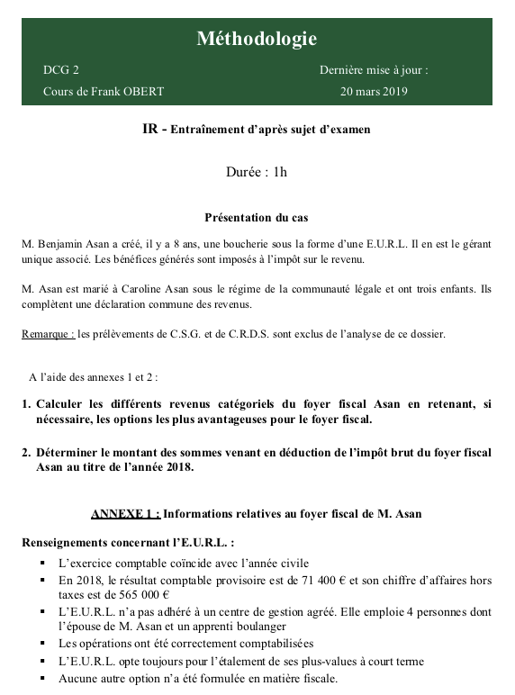 | Les cas d'entraînement de fin d'année |